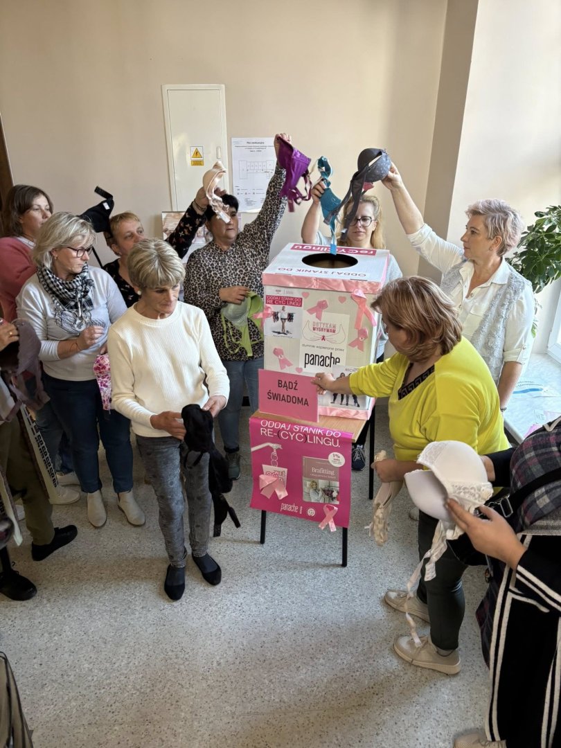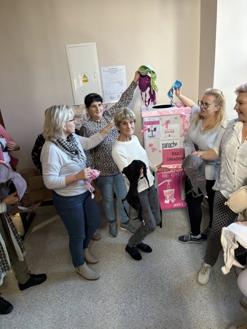 W październiku, który jest Miesiącem Świadomości Raka Piersi w naszej szkole ruszyła akcja oddaj biustonosz do re(cyc)lingu Dzięki temu włączmy się w pomoc osobom chorym na raka piersi.